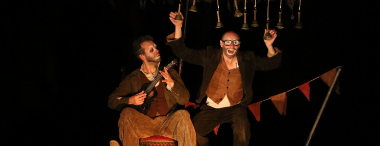 Het karretje waarmee de twee clowns onderweg zijn, zou hen moeten beschermen en onderdak moeten bieden. Het stelt hen echter danig op de proef: het schommelt, het slingert, het maait hen onderuit en schopt hen eruit. De vaste grond lijkt continu onder hun voeten weg te zakken.