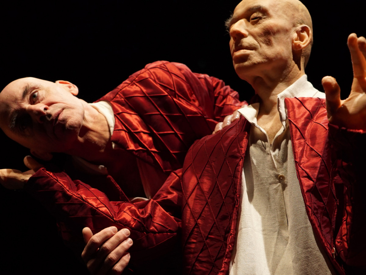 Verstoord en gefascineerd tegelijkertijd, waagt hij zich achter de spiegel, om zijn schaduw, zijn andere zelf, zijn duistere tweelingbroer onder ogen te zien.